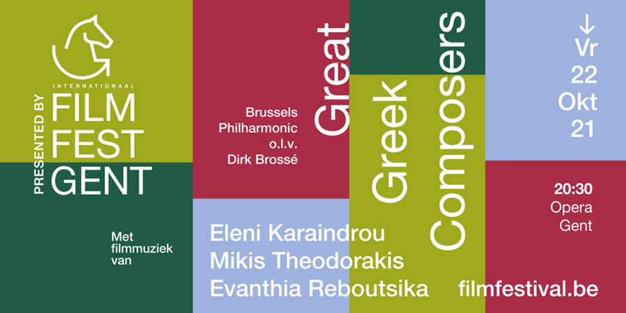 The Film Fest Ghent is coming back with its 48th edition by focusing on Greek cinema. The film music concert will take place on Friday 22 October 2021. That day the Film Fest Ghent is going to present in Opera Ghent the concert Great Greek Composers with film music by - among others - Eleni Karaindrou, Mikis Theodorakis and Evanthia Reboutsika. The day after, the best film and TV composers of the past year will be honored at the prestigious World Soundtrack Awards.