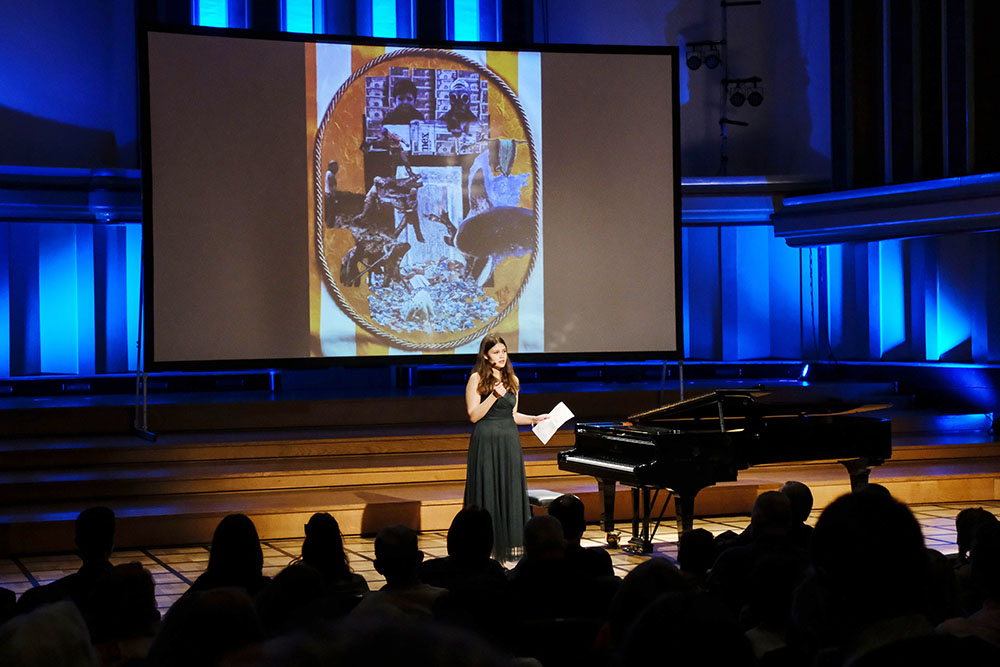 Tatjana Poznakova, a student and active member of the Institute, brought a fresh and personal tone to the concert with her monologue, “My Rights as Mother Nature.” Through her compelling words, she highlighted humanity’s role in protecting nature, deeply touching the audience and reinforcing the evening’s message. Her performance prompted reflections on our relationship with the natural world.